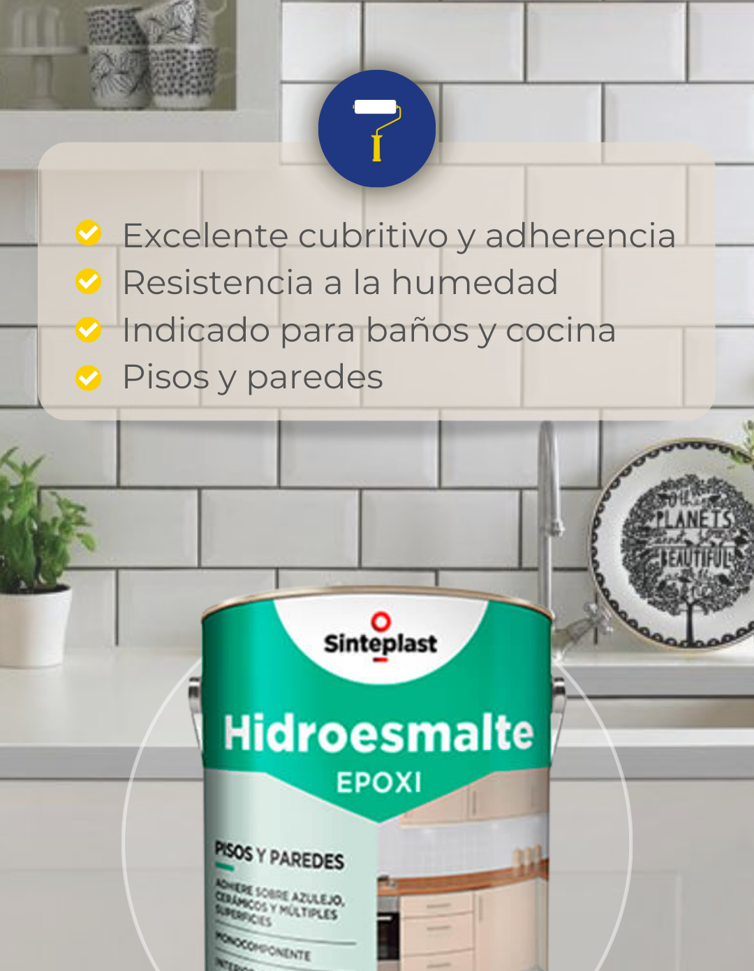 Esmalte acrílico-epoxi pre catalizado, base agua, de acabado satinado, para aplicar sobre superficies cerámicas, azulejos y vidrios. Adecuado también para otras superficies como yeso, mampostería y metal (hierro, aluminio, galvanizado). Excelente cubritivo y adherencia, alta resistencia a la humedad, al ensuciamiento y al desarrollo de hongos. Apto para uso interior y exterior.