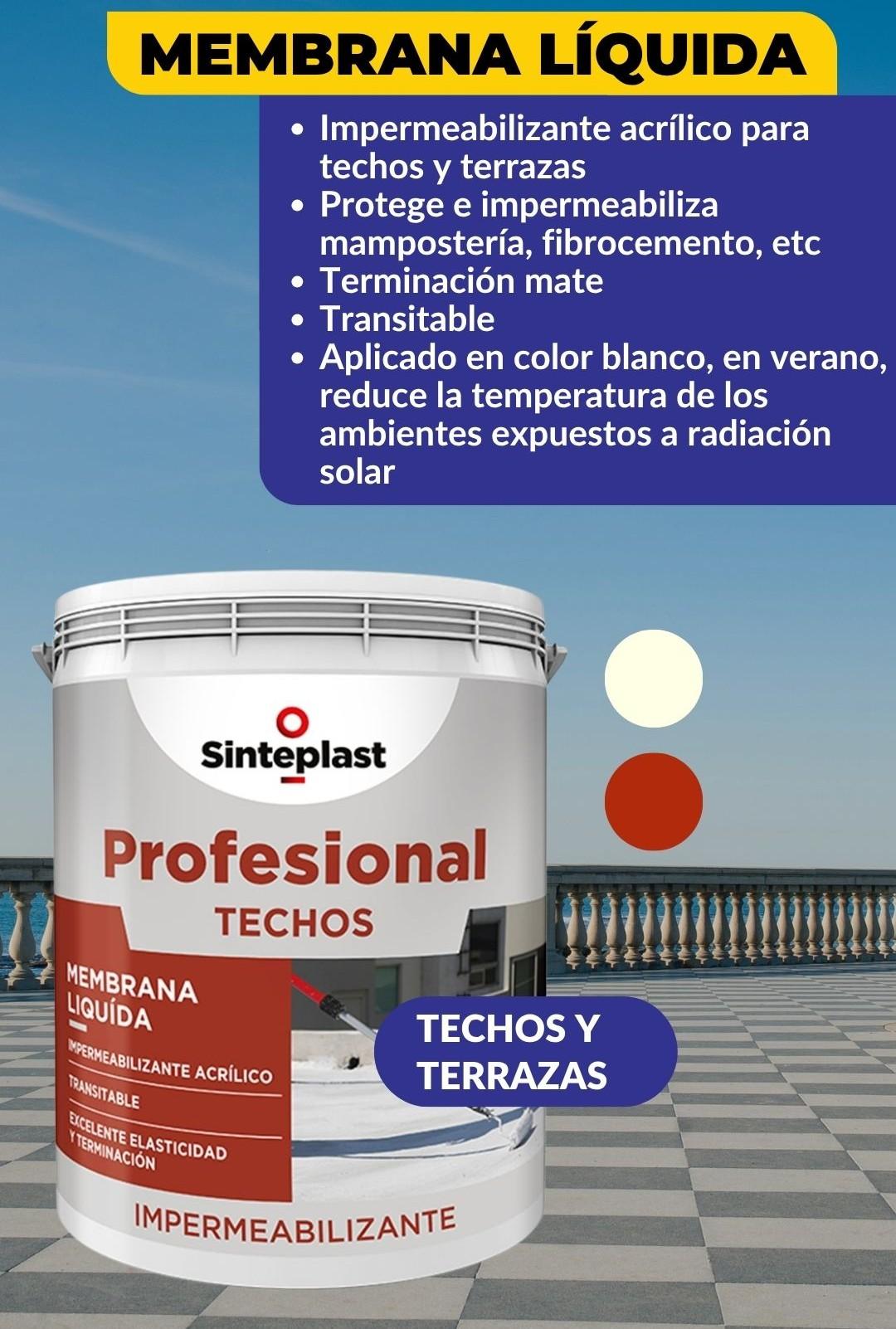 Recubrimiento impermeabilizante acrílico para techos. Aplicado en el espesor recomendado forma una una membrana de excelente elasticidad, impermeable y resistente al tránsito.