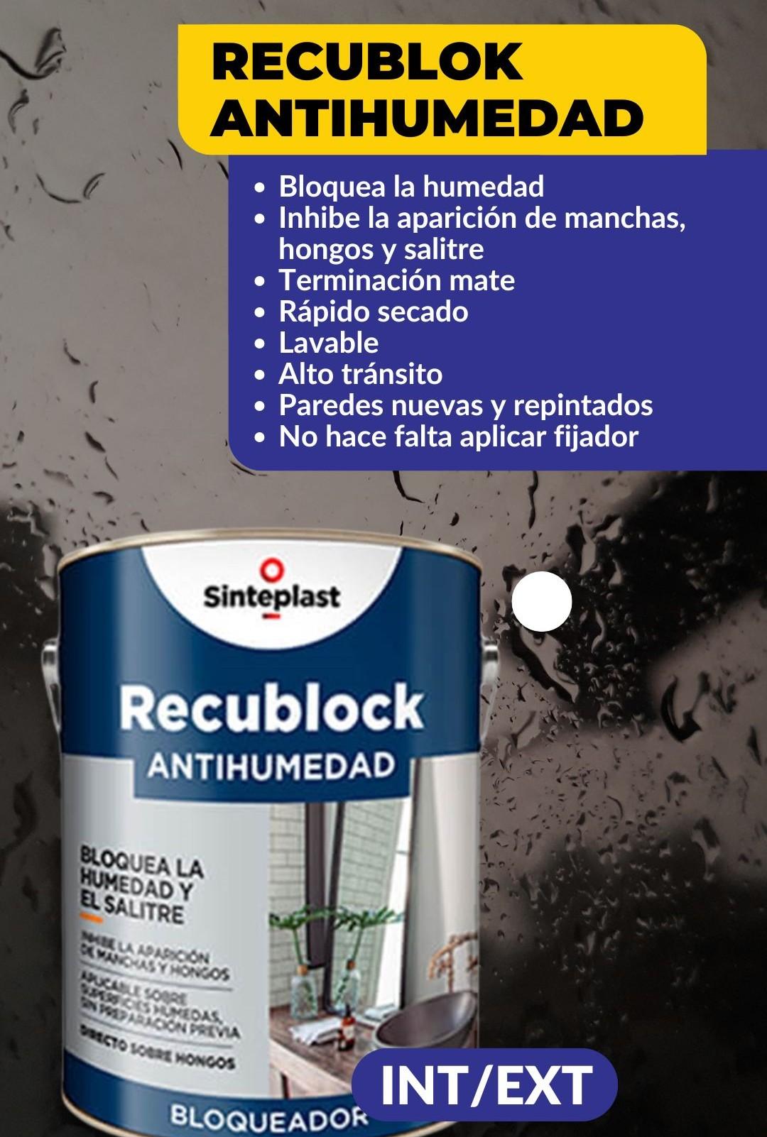 Pintura antihumedad para interiores y exteriores, base solvente de bajo olor. Posee fuerte poder antihongos que inhibe su desarrollo en la superficie de la pintura. No deja olor residual. Por su rápido secado, mínima preparación de la superficie y alta lavabilidad es especialmente indicada para ambientes muy transitados, que deban habitarse inmediatamente después de pintarlos. Bloquea la humedad ocluida en las paredes e inhibe la aparición de sus síntomas sobre la superficie (manchas, hongos, salitre).